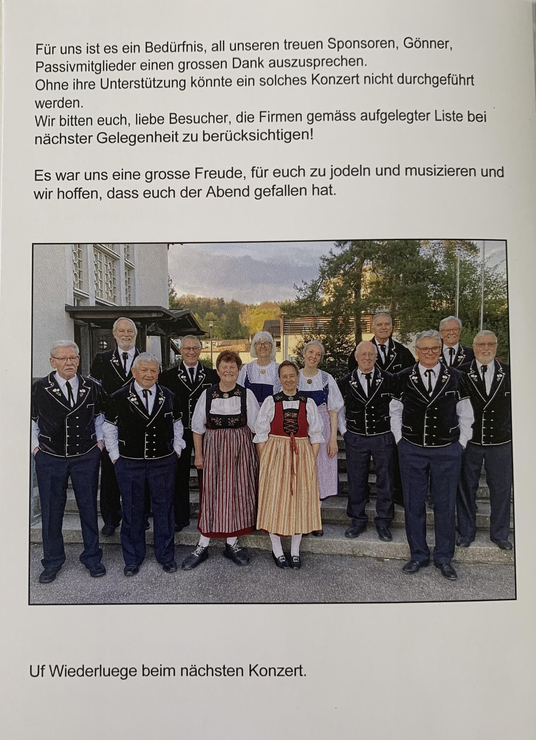 Gerne singen wir für Sie an einem Anlass, sei es geschäftlich oder privat, draussen oder drinnen, oder besuchen Sie uns an unserem alljährlichen Jodler-Obe.