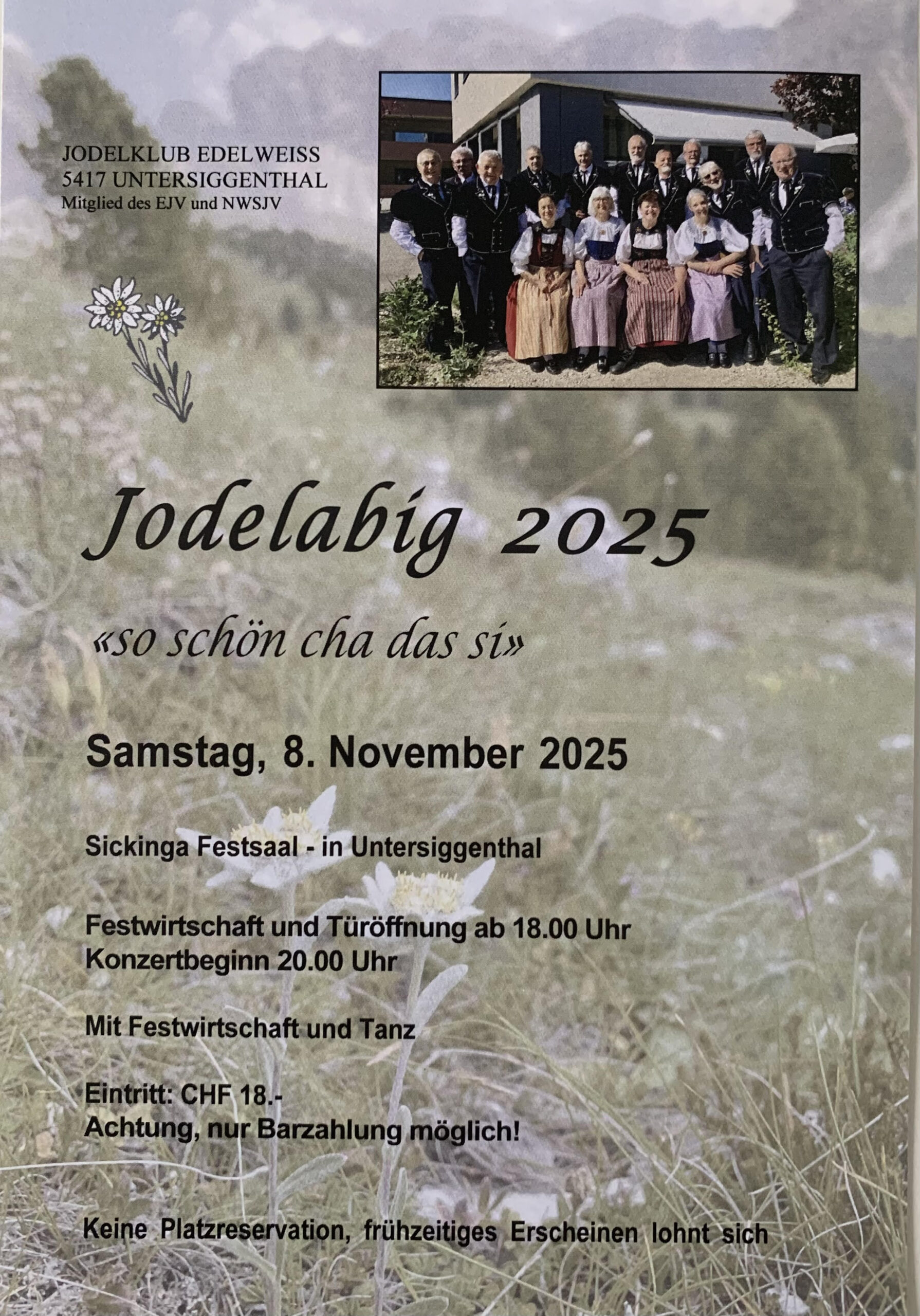 Der im Jahre 1922 gegründete Jodlerklub bezweckt die Pflege des schweizerischen Volksgesanges, speziell das Jodeln. Es wird jeweils mit viel Spass und Schwung am Donnerstag um 20.00 Uhr in der Aula Schulhaus Untersiggenthal geprobt.
