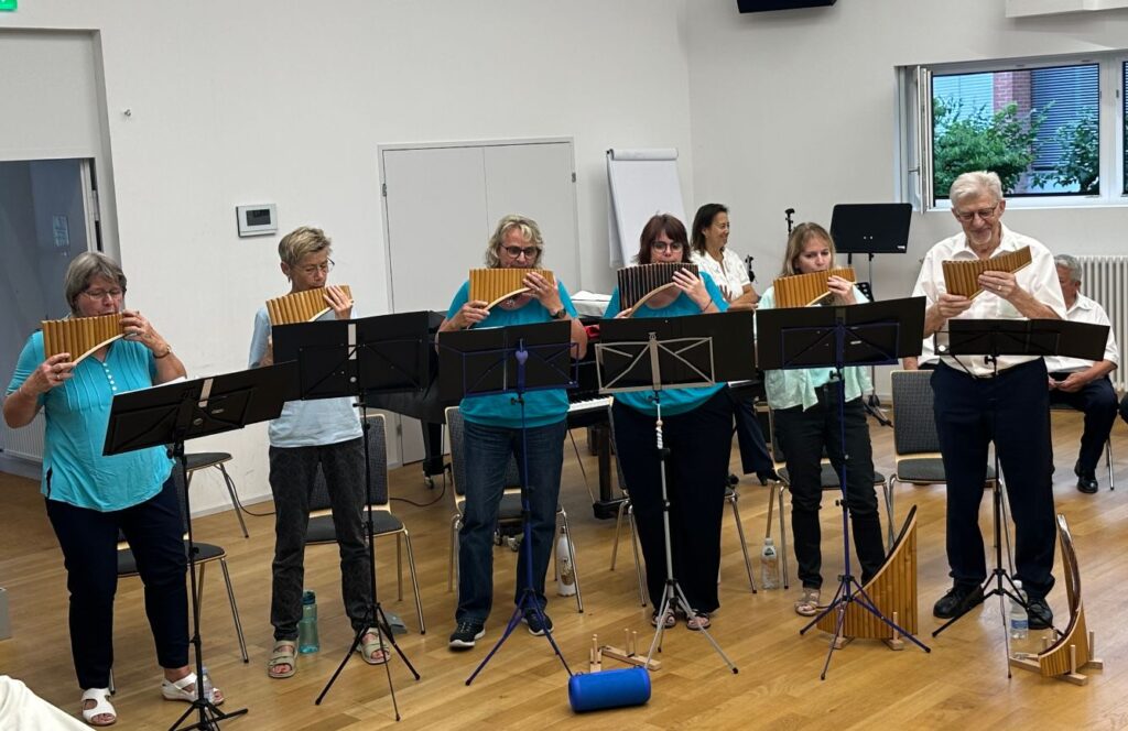 Wie jeden Donnerstag – Abend, trafen sich die froh gelaunten Jodlerinnen und Jodler des Jodelklubs Edelweiss Untersiggenhal zum gemeinsamen Proben in der Aula der Schule Untersiggenthal. Doch was war denn diesmal los? Die einheitlich gekleideten «Frauen und Mannen» mussten etwas Besonderes im Sinne haben. Haben sie sich im Datum geirrt? Denn 5 hübsch gekleidete Damen und ein Herr zogen frischvergnügt ihre Panflöten aus den Taschen, stellten ihre Notenständer im Halbkreis auf und begannen sich einzustimmen. Von allen Seiten strömten fröhlich zufriedene Menschen durch die Eingangstüre…..
