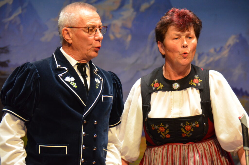 Das Vereins Duo Martha und Sepp erheiterten die Gaeste mit den Liedern SLiedli sälbst Zwöit* und *SEmmeli und de Franz.